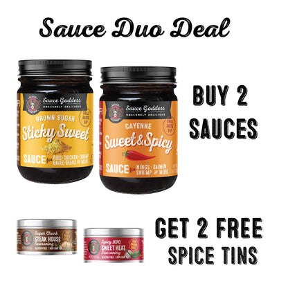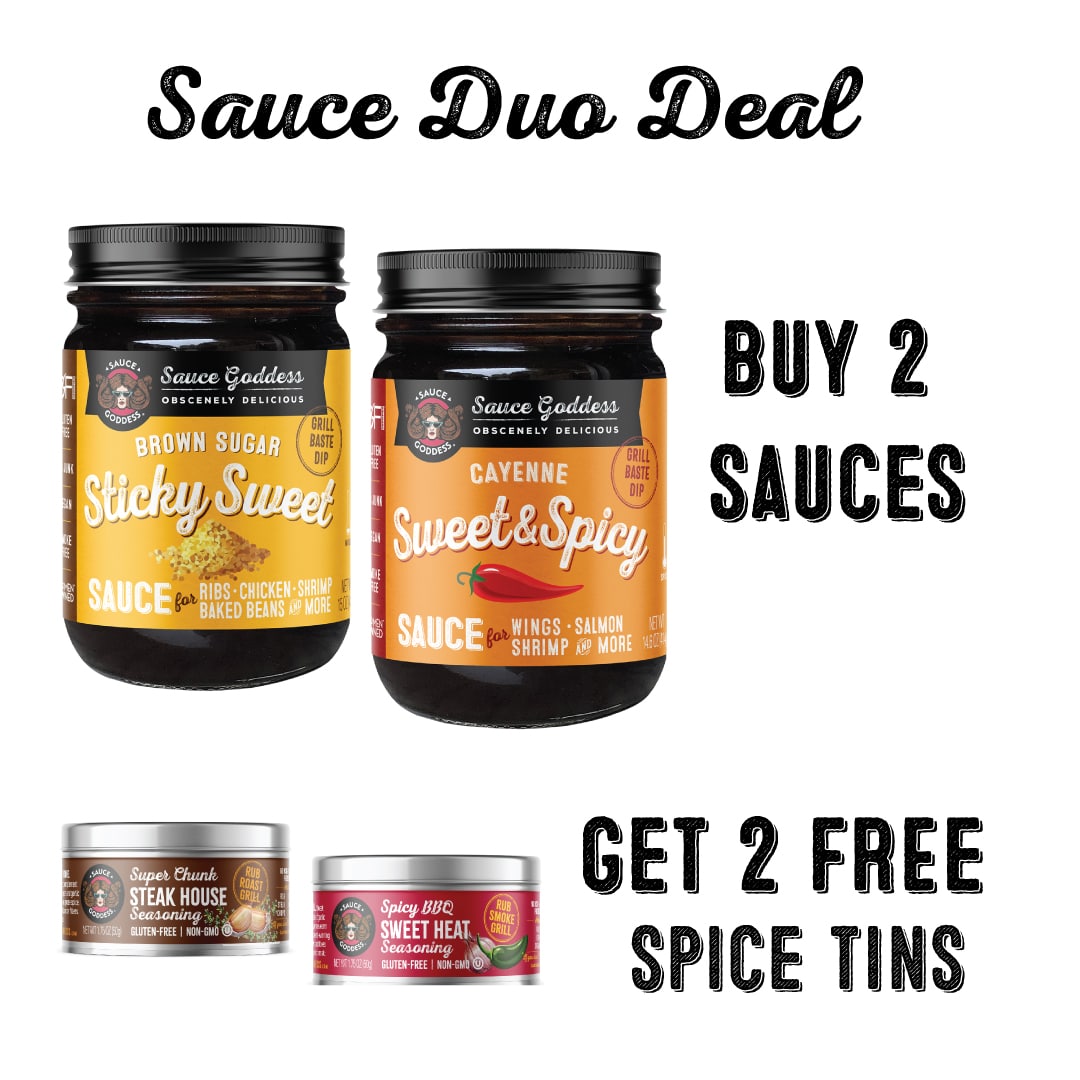Our sauce and spice duo features any 2 sauces and get 2 tins of spice free. We've partnered together the flavors we think you'll love.